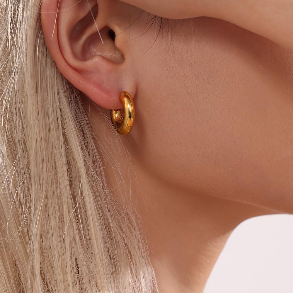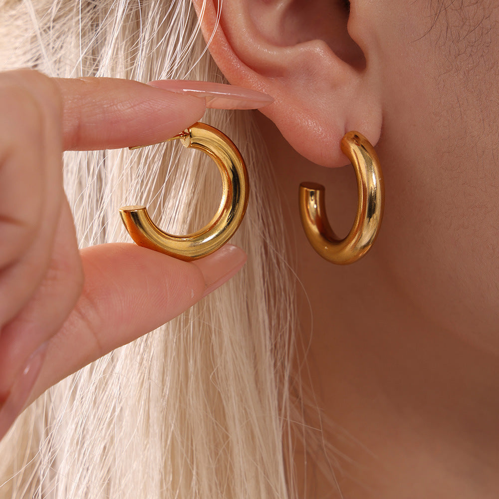 Elegant Minimalist Style C-shaped Earrings French 18K Gold Plating Elegant Ring Glossy Earrings